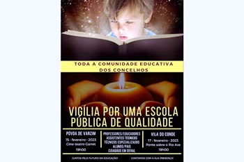 Os professores voltam à rua nesta 4.ª feira. Desta vez os docentes marcaram aquilo que chamam uma “Vigília por uma escola pública de qualidade” e que vai procurar reunir também outros profissionais do setor da Educação, alunos, pais e restantes cidadãos. Vai ser às sete da tarde junto ao Cine-teatro Garrett onde a essa hora estarão também os participantes na 24.ª edição do Correntes D’Escritas – Encontro de Escritores de Expressão Ibérica.