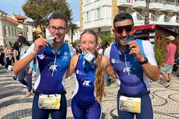 Micaela Dourado foi a primeira a entrar em ação na parte da natação que foi cumprida na envolvente da baía de Cascais. A jovem foi a responsável por desafiar os colegas e ficou muito feliz com o resultado alcançado. Seguiu-se a participação de Manuel Pereira no ciclismo e o atleta admitiu que se tratou de uma experiência para mais tarde recordar. Por fim, coube a Nuno Carvalhais fechar a prestação coletiva e o jovem não escondeu que o objetivo com que saíram da Póvoa de Varzim era ir ao pódio.