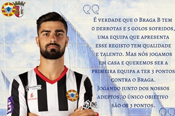 Gonçalo Pimenta está apostado em ajudar o Varzim a tornar-se no primeiro clube a derrotar o Braga B nesta edição da Liga3 (tem 5 vitórias e 7 empates em 12 jogos). O lateral direito foi o porta-voz do plantel na antevisão e admitiu que se trata de um adversário com jovens de muita qualidade, mas também defendeu que a bola está do lado varzinista e que o grupo só pensa na vitória. Nesta altura, ao estar no lote dos 4 primeiros classificados, o poveiro considera que o desempenho da equipa é positivo até ao momento. No plano individual, Pimenta tem alternado a titularidade com o banco, mas garantiu que está sempre pronto para jogar o tempo que o treinador entender. O capitão abordou ainda a surpreendente eliminação na Taça, tendo assegurado que essa desilusão já foi ultrapassada pelo grupo e que o foco está agora no campeonato. Pimenta deverá ser uma das opções iniciais de Vítor Paneira na receção ao Braga B que sucede esta tarde a partir das 15h...