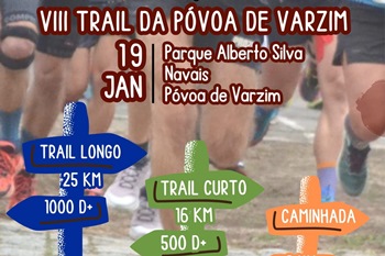 Ainda estão abertas as inscrições para a 8.ª edição do Trail da Póvoa de Varzim, que decorre no próximo dia 19 de janeiro. Organizado pelo Centro Desportivo e Cultural de Navais, com o apoio da Câmara Municipal, o evento vai contar com três provas: um trail longo de 25 km, um trail curto de 16 km e uma caminhada de 8 km. As provas terão início no Parque Desportivo Alberto Silva, em Navais, com a partida do trail longo às 9h30, seguida do trail curto às 9h45, e, por fim, a caminhada às 10h. Este ano, o trail volta a ser qualificativo para o UTMB World Series na categoria de 20k nas distâncias de 16 e 25 km. A caminhada terá um cariz solidário, com os valores das inscrições a reverterem para a construção do Centro Residencial Divino Salvador, em Navais. As inscrições estão abertas até às 23h59 deste domingo e podem ser feitas no site oficial da câmara municipal.
