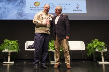 Após elogiar o trabalho feito na divulgação da Camisola Poveira, o ministro foi surpreendido com a oferta de um exemplar dessa peça artesanal local por parte de Aires Pereira. O edil tinha começado o evento a destacar o esforço do Município para “unir a comunidade local ao maior recurso natural do concelho”, que é o “sustento alimentar de muitas famílias poveiras”. Daí a decisão da Câmara em promover “algo novo”, fomentando a economia azul e estabelecendo “pontes entre os setores ligados à inovação e desenvolvimento, tecnologia, ciência e inteligência artificial e os meios mais tradicionais de operar, navegar e pescar em alto mar”.
