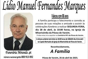 Realiza-se esta manhã o funeral de Lídio Marques, antigo presidente do Varzim Sport Club. A cerimónia está marcada para as 10h, na Igreja da Misericórdia da Póvoa de Varzim, seguindo depois para o Cemitério nº1 da cidade. Lídio Marques, que morreu no sábado aos 88 anos, teve um papel de grande destaque no clube, liderando a subida do Varzim à Primeira Divisão na década de 80. Era atualmente membro do Conselho Varzinista. O clube já lamentou publicamente a perda de uma das suas figuras mais emblemáticas.