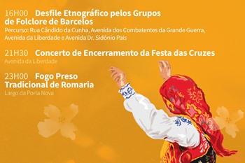 Chega ao fim mais uma edição da Festa das Cruzes, em Barcelos. As celebrações voltaram a arrancar com a habitual alvorada festiva, seguindo-se às 9h a arruada Zés P’reiras Nacionais de Fragoso. Pelas 10h, a Banda de Música Municipal de Silleda, atua no Campo 5 de Outubro, animando o coreto. O Palco Barcelos, na Avenida da Liberdade, recebe pelas 11h30 o espetáculo Mini Cruzes com a Nina Toc Toc, um momento dedicado aos mais pequenos, com música e diversão garantida. Pelas 16h, realiza-se o tradicional Desfile Etnográfico pelos Grupos de Folclore de Barcelos, que percorre a Rua Cândido da Cunha, Avenida dos Combatentes da Grande Guerra, Avenida da Liberdade e Avenida Dr. Sidónio Pais. O concerto de encerramento da Festa das Cruzes está marcado para às 21h30, na Avenida da Liberdade, e a noite termina em beleza com o Fogo Preso Tradicional de Romaria, às 23h, no Largo da Porta Nova.