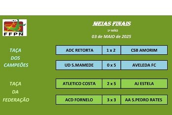 Na Taça dos Campeões, o Amorim foi ganhar ao terreno do Retorta por 2x1 e o Aveleda goleou no campo dos tirsenses do São Mamede por 5x0. Na Taça Federação, o Estela goleou no reduto dos vimaranenses do Atlético da Costa por 5x2, enquanto o Fornelo e o Rates empataram a três golos. A segunda mão está agendada para dia 24 deste mês.