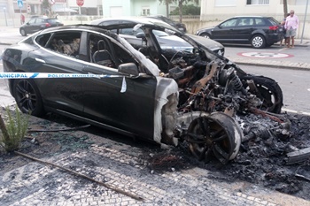 Um carro elétrico ficou destruído, na Póvoa de Varzim, devido a um incêndio que deflagrou esta madrugada. A viatura, da marca Tesla e de matrícula francesa, ardeu quando estava estacionada na Avenida Santos Graça, já muito perto do cruzamento com a rua Latino Coelho e a Praça 5 de outubro. Os Bombeiros receberam o alerta muito perto das 4h e para o local seguiu um veículo com 5 elementos. As chamas foram rapidamente extintas, mas o automóvel ficou totalmente danificado. Desconhecem-se as causas da origem do fogo, que não provocou feridos. Durante a manhã, centenas de pessoas que passavam naquela zona pararam para ver o veículo sinistrado, que foi rebocado por volta do meio-dia.